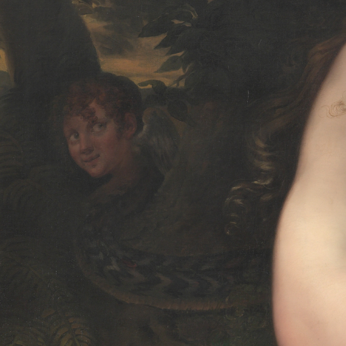 朱賽佩‧索尼所創作的〈亞當與夏娃〉描繪的是《聖經》〈創世紀〉中亞當與夏娃在受到撒旦誘惑吃下分別善惡樹之果實後,發現自己赤身露體,試圖躲藏神的情境。這幅作品的尺寸相當大,透過現在的檢測技術,我們可以看見畫家在創作過程中其實做了非常多的修改和調整,不僅看見畫家的用心,也讓我們看見畫家創作過程中不斷變動的構思!