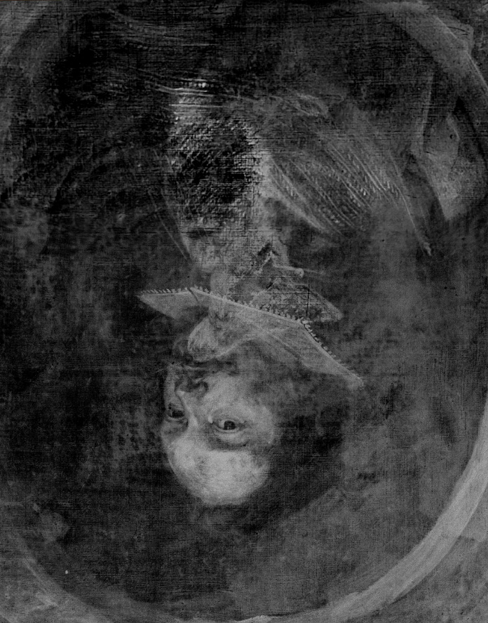 若以〈菲德烈克‧范‧馬瑟萊爾肖像〉這件作品來看,則可推測他底下的女子肖像可能是被刮掉的。從鉛元素分佈圖來看,還可以看到女子的頭部上方有一點被刮掉的痕跡。