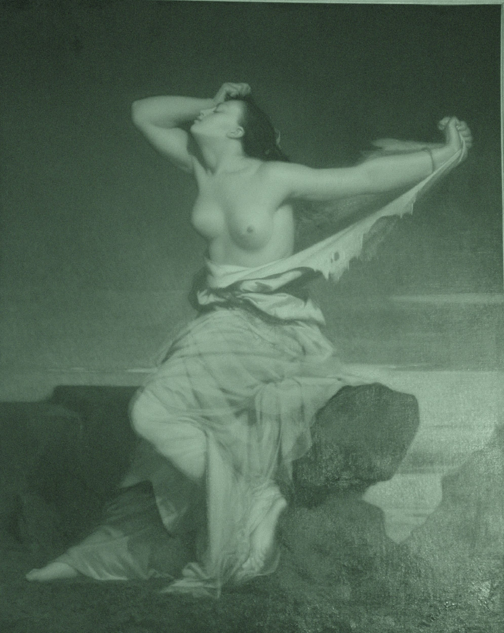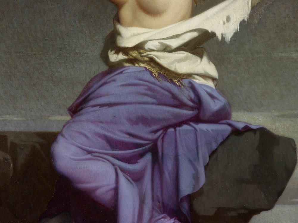畫中的拉結因失去孩子而悲痛哭泣,畫家德巨席爾精心設計著充滿戲劇性的畫面,拉結的裙擺上還留著畫家在創作過程中的修改痕跡呢!