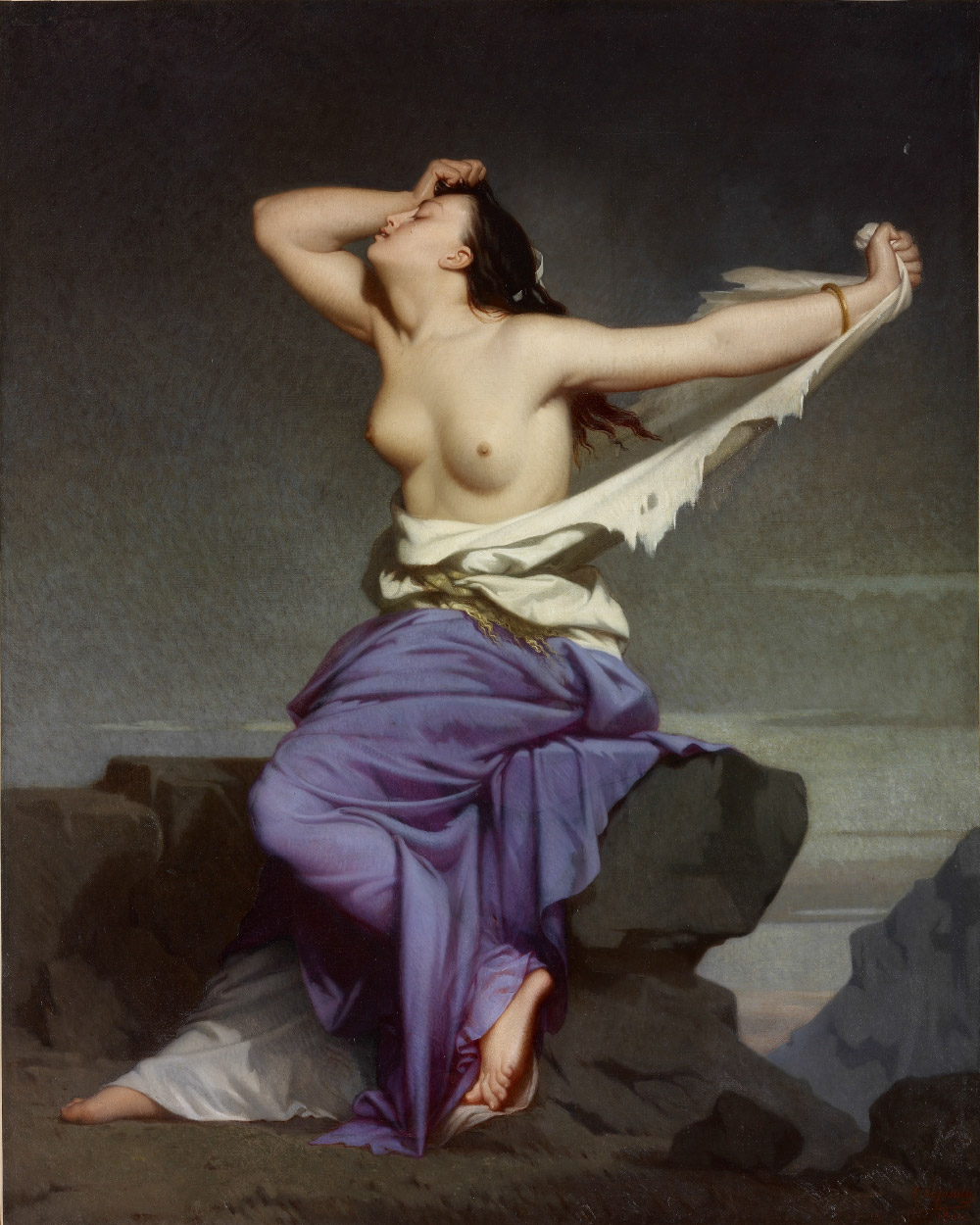 這件戲劇性張力十足的作品是由法國畫家亨利‧布雷茲‧法蘭斯瓦‧德巨席爾(Henri Blaise François Dejussieu, 1828-約1874)創作的。但可惜的是,我們對他的生平所知不多,只知道他曾進入巴黎美術學院學習,作品也曾入選巴黎沙龍展(Salon de Paris)。