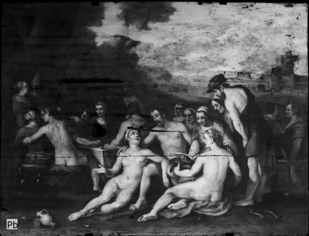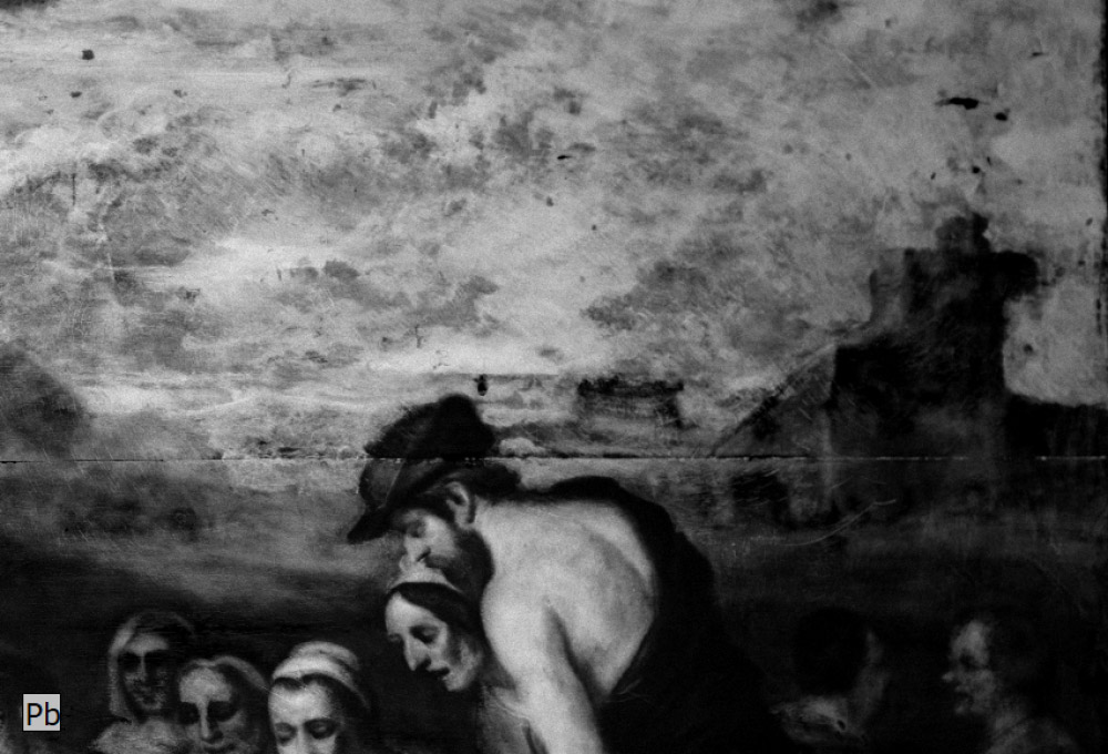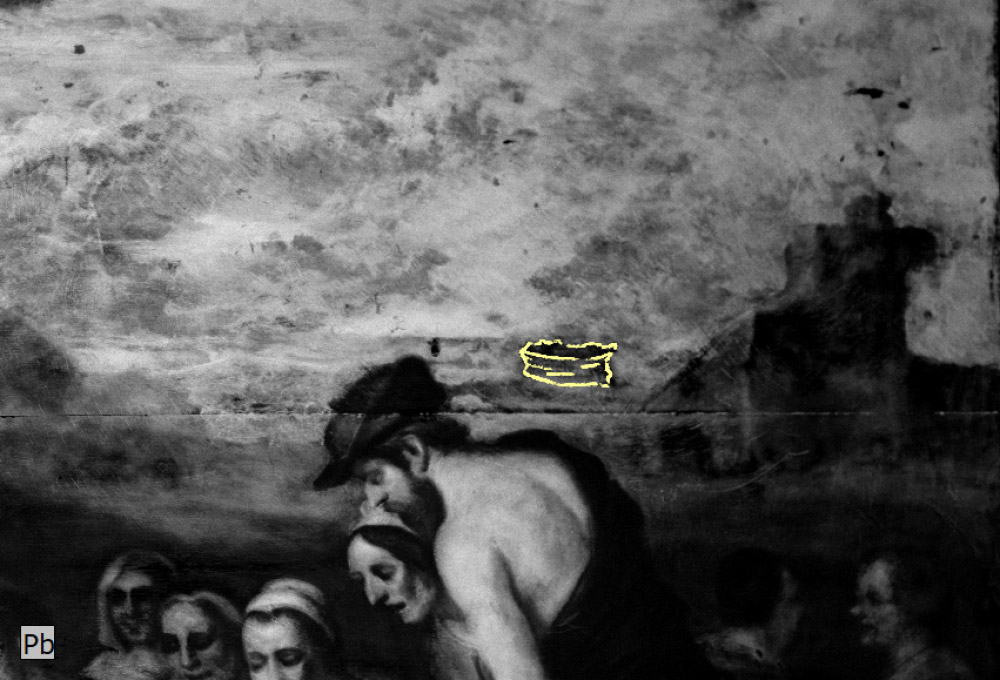 從掃描式XRF的鉛元素分佈圖來看,我們確實可以隱隱約約看見遠方的房屋旁有一艘船的身影,可能就是消失的挪亞方舟!