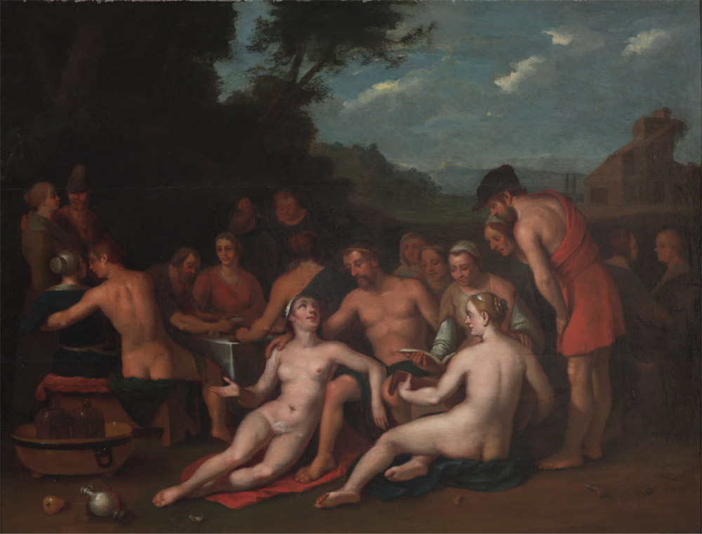 〈大洪水來臨前的人類腐敗〉,寇內里斯・范・哈倫,1619,69 x 96公分,油彩、木板,法國杜埃博物館。