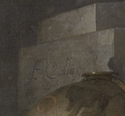 以現藏於荷蘭國家歷史博物館(Rijksmuseum)的〈人生虛空靜物畫〉(Vanitas Still Life),克里爾的簽名就以類似銘文的方式刻劃在柱子的底座。